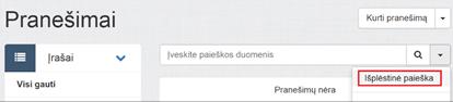 Lange galima atlikti išplėstinę pranešimų paiešką: