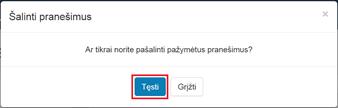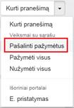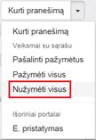 Jei reikia nuimti pranešimo pažymėjimą, prie atitinkamo pranešimo pele paspausti ant varnelės.
