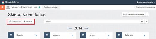 Lange tiek kalendoriaus, tiek sąrašo formoje galima atlikti paiešką: