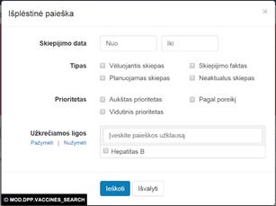 Išplėstinė paieška vykdoma iš modalinio