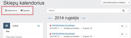 Puslapyje Skiepų kalendorius galima peržiūrėti skiepų informaciją kalendoriaus (skaityti skyriuje 4.16.1.2 Peržiūrėti skiepų įrašus kalendoriaus forma) arba sąrašo (skaityti skyriuje 4.16.1.1 Peržiūrėti skiepų įrašus sąrašo forma) forma, paspaudus mygtuką atitinkamai Kalendorius arba Sąrašas lango viršuje kairėje.
