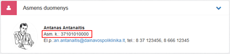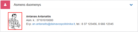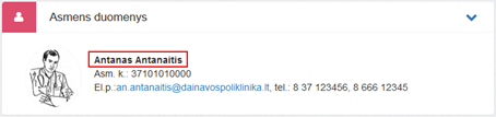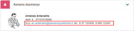 1. Asmens duomenys. Bloke matomi specialisto asmens duomenys ir kontaktinė informacija.
