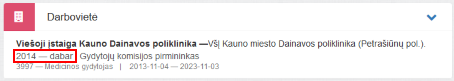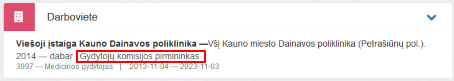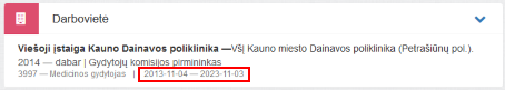 Pareigos šioje darbovietėje, rodomas jeigu nurodyta