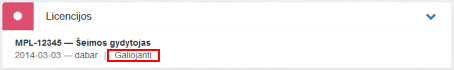 Licencijos būsena.