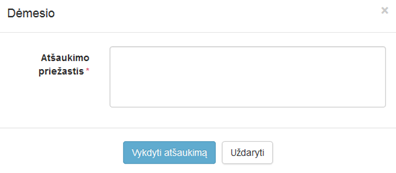 e. recepto atšaukimo forma, kur reikia įvesti atšaukimo priežastį.
