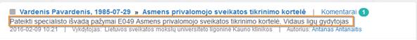 užduočiai Parengti specialisto išvadą pažymai E049 Asmens privalomojo