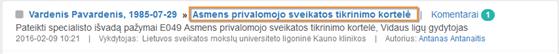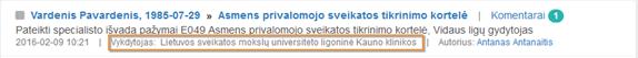 pateiktų komentarų skaičius. Paspaudus nuorodą Komentarai išskleidžiamas/suskleidžiamas