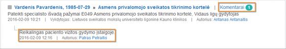 Paciento informacija, rodoma paciento, su kuriuo susieta
