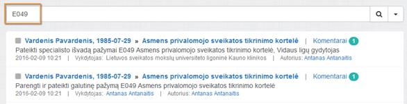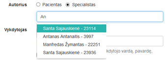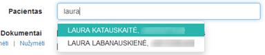 pacientas), pradėti vesti vardą arba pavardę ir iš pagal įvestą užklausą rodomų