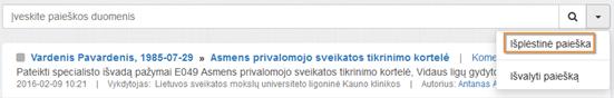 Leidžiama išplėstinė paieška pagal šiuos kriterijus: