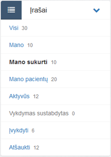 Mano – medicininių dokumentų ir pažymų tvarkymo užduotys,