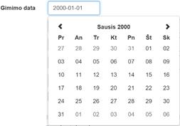 Gimimo data – pasirenkama iš kalendoriaus arba įvedama