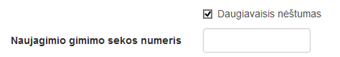užpildyti žemiau atsiradusį lauką Naujagimio gimimo sekos numeris. Lauke