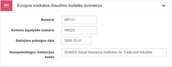 numeris, nurodytas Europos sveikatos draudimo kortelėje. Užpildyti neprivaloma.