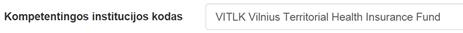 sveikatos draudimo kortelėje nurodytas kompetentingos institucijos kodas.