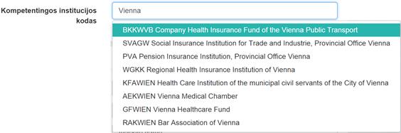 Užpildyti neprivaloma. Įvedama reikšmė turi egzistuoti klasifikatoriuje ES kompetentingų institucijų klasifikatoriaus.