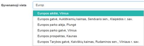 Gyvenamoji vieta – informacija nurodoma renkantis iš