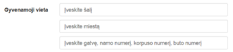 Lietuvoje, ar užsienyje. Adreso įvedimo laukai Gyvenamoji vieta