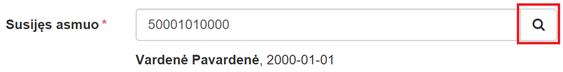 registro buvo pasirinkta Ne) – lauke įvedamas susijusio