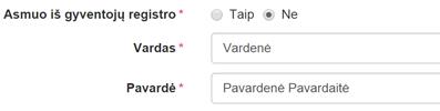 Kai asmuo ne iš gyventojų registro (duomenis įvedus dar
