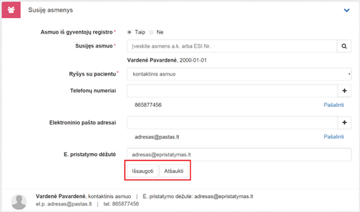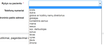 Ryšys su pacientu – lauke pasirenkamas susijusio asmens