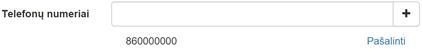 Leidžiama pridėti daugiau nei vieną telefono numerį. Pridėtas numeris matomas sąraše po lauku.