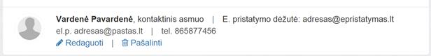 E. pristatymo dėžutė – įvedamas susijusio asmens e.