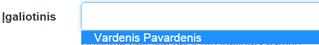 lauke nurodoma paciento pavardė (-ės). Leidžiama įvesti tekstinius, skaitinius