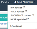 atsijungti nuo specialistų portalo (išskleidžiamas meniu portalo