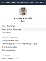 juostos išskleidžiamas meniu“. Prisijungusio specialisto nustatymų tvarkymo