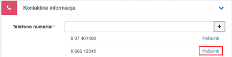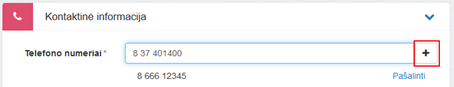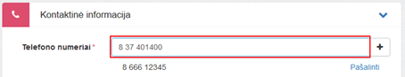 Pridėtas numeris matomas sąraše po įvedimo lauku. Leidžiama pridėti daugiau nei vieną telefono numerį. Paspaudus sąraše šalia telefono numerio rodomą nuorodą Pašalinti įvestas telfono numeris ištrinamas iš sąrašo.