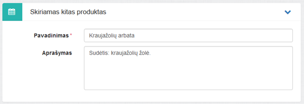 Būtina įvesti skiriamo produkto Pavadinimą.