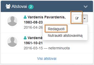išskleidžiamame meniu galima redaguoti galiojančio atstovavimo duomenis (žr.