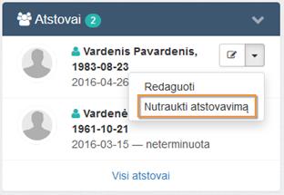 Pasirinkus Nutraukti atstovavimą išskleidžiamame meniu