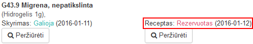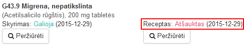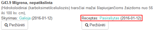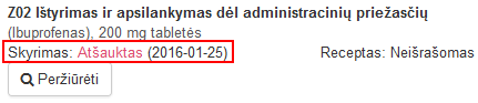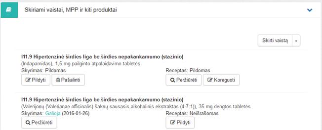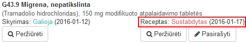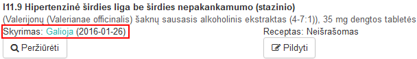 recepto galiojimą (veiksmai aprašyti skyriuose Peržiūrėti, tvarkyti skyrimą ir Peržiūrėti, tvarkyti e.