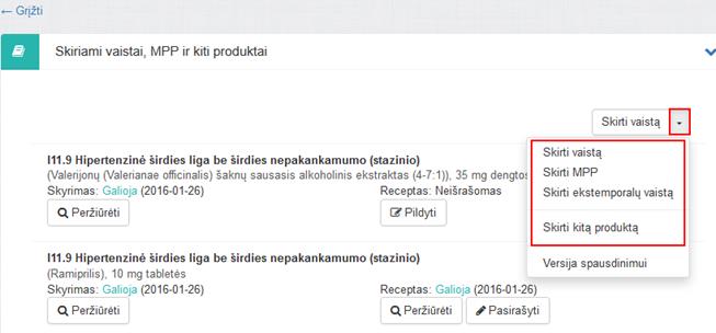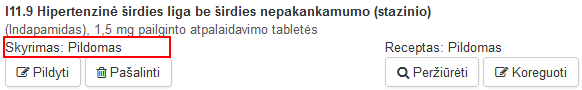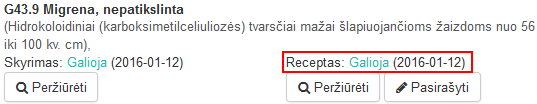 recepto duomenis (veiksmas aprašytas skyriuose Peržiūrėti, tvarkyti skyrimą ir Peržiūrėti, tvarkyti e.