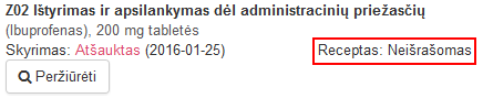 Atšauktas – nebeaktualus receptas, kurio negalima įsigyti.