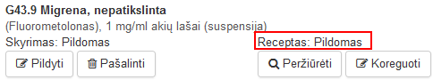 Priklausomai nuo to, kokios būsenos yra skyrimas ar receptas, galimi tokie veiksmai (vaizduojami mygtukais):