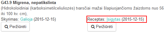pacientui skirto e. recepto galiojimą. Tokie e. receptai nėra pateikiami